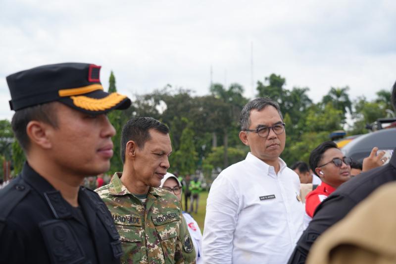 Apel kesiapan dilaksanakan di Lapangan Tegar Beriman, Cibinong, Rabu (5/11). Bupati Bogor, Rudy Susmanto bersama Forkopimda memastikan secara langsung kesiapan personel. Personel gabungan, terdiri dari Pemerintah Kabupaten (Pemkab) Bogor, TNI, Polri, dan relawan masyarakat.