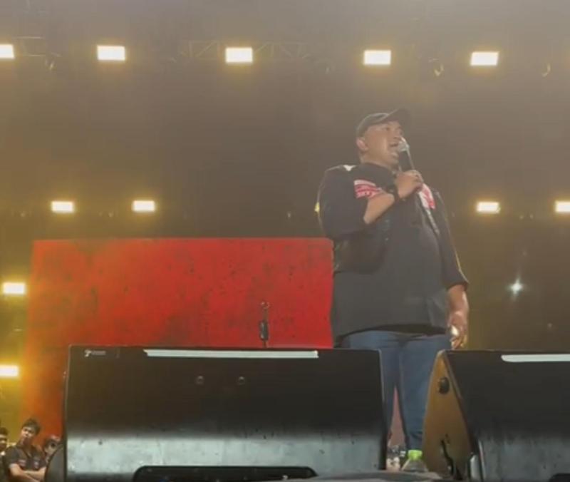 Bupati Bogor, Rudy Susmanto saat memberikan sambutan pada acara HUT MBI ke-7, di Lapangan Panahan, Stadion Pakansari, Cibinong, Sabtu (29/11/2023) malam.