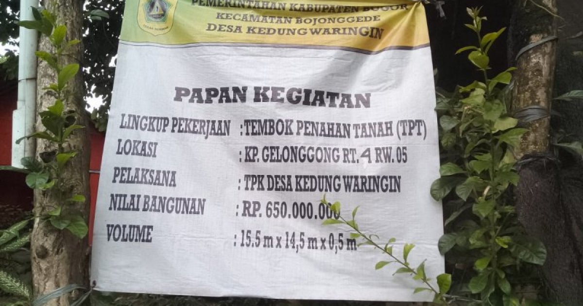 Kabarindoraya.com | Bogor - Pembangunan Tembok Penahan Tanah(TPT) di Kp. Gelonggong RT.4/5, Desa Kedung Waringin Kecamatan Bojonggede Kabupaten Bogor diduga"LAMBAT" hingga kini tak kunjung selesai dan membahayakan serta merugikan masyarakat di sekitar lokasi.