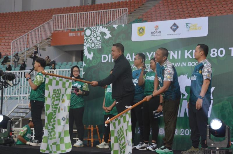 Kabarindoraya.com | Cibinong- Dalam rangka memperingati Hari Ulang Tahun ke-80 Tentara Nasional Indonesia (TNI), Bupati Bogor Rudy Susmanto bersama Forum Koordinasi Pimpinan Daerah (Forkopimda) serta jajaran Pemerintah Kabupaten mengikuti kegiatan Bogor 10K Siliwangi Run, yang digelar pada Minggu pagi (12/10), start dan finis di Stadion Pakansari, Cibinong.