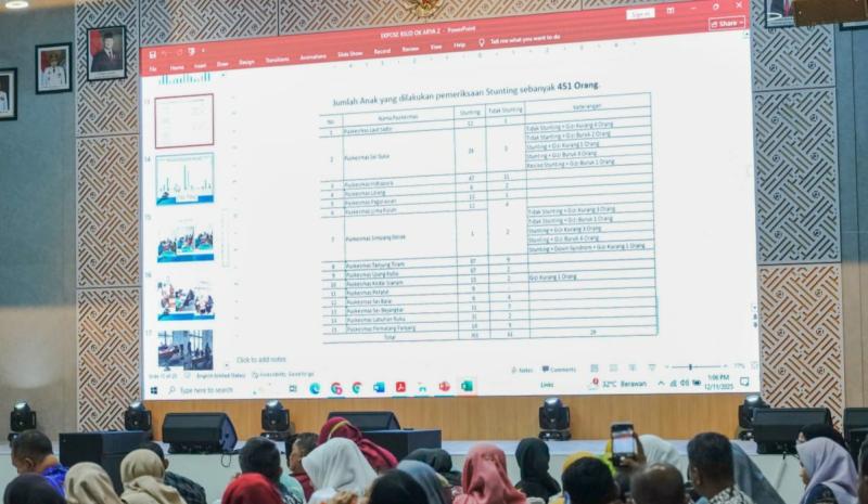 Pada kesempatan tersebut, setiap kecamatan turut memaparkan hasil evaluasi pelaksanaan program stunting di wilayah masing-masing, termasuk progres intervensi gizi, pendataan balita berisiko, kendala yang dihadapi, serta strategi percepatan yang akan ditempuh.