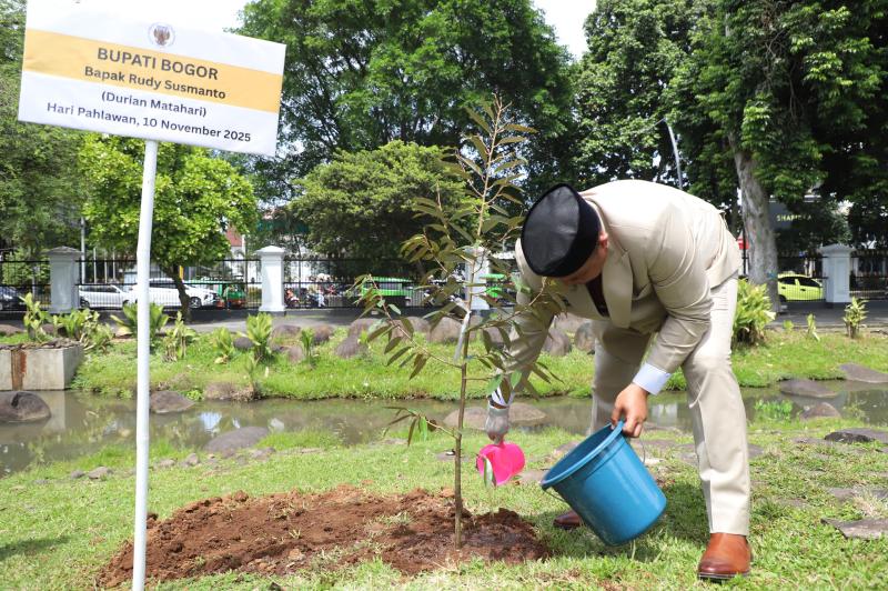 Bertepatan dengan Peringatan Hari Pahlawan Nasional 2025, Bupati Bogor Rudy Susmanto bersama Wali Kota Bogor Bapak Dedie Rachim melaksanakan kegiatan penanaman pohon di kawasan Istana Kepresidenan Bogor, pada Senin (10/11/25).