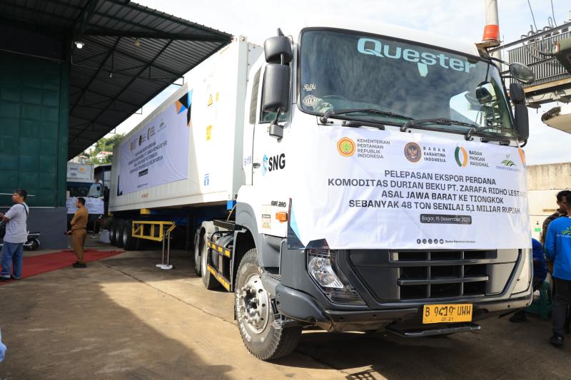 Sebanyak 48 ton durian beku dengan nilai ekspor mencapai Rp5,1 miliar diberangkatkan ke pasar internasional. Momentum ini menjadi tonggak penting bagi penguatan komoditas hortikultura unggulan Kabupaten Bogor sekaligus membuka peluang pasar ekspor yang lebih luas.