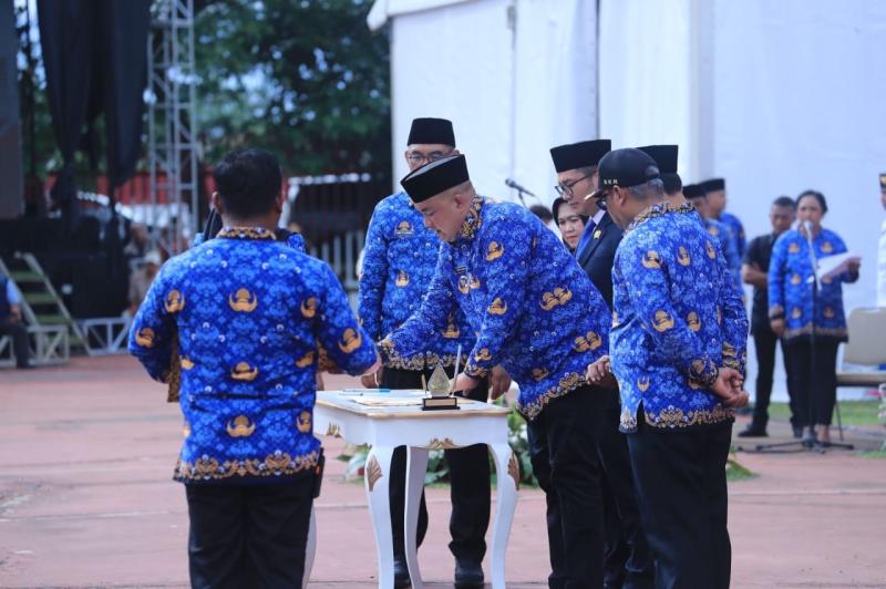 Kabarindoraya.com | Cibinong - Bupati Bogor, Rudy Susmanto, secara resmi melantik 9.687 Pegawai Pemerintah dengan Perjanjian Kerja (PPPK) paruh waktu, di Lapangan Panahan Stadion pakansari, Cibinong, Jumat (14/11). Pelantikan PPPK paruh waktu ini menjadi yang terbesar di tingkat kabupaten / kota se-Indonesia.