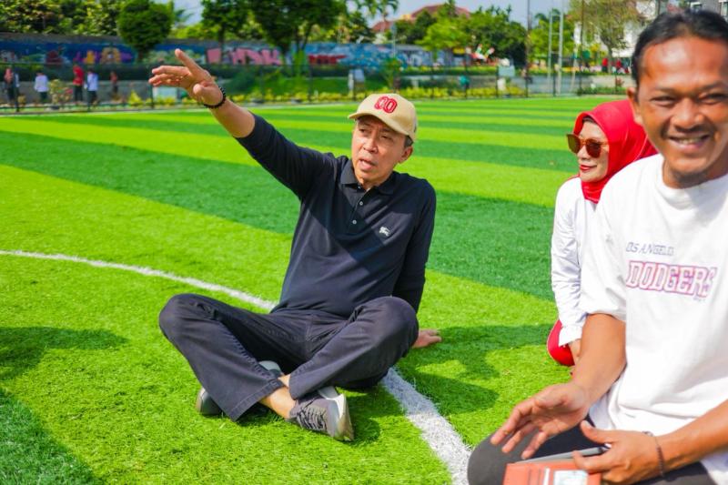"Saya juga mengimbau semua untuk bisa merawat. Kalau main di sini jangan pakai sepatu pull besi, sesuaikan dengan kondisi lapangan mini soccer dengan rumput sintetis," tuturnya.