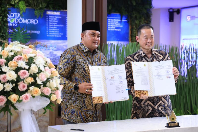 Kedua, dilakukan penandatanganan hibah lahan antara Agung Podomoro Group dengan PDAM Tirta Kahuripan, yang akan dimanfaatkan untuk memperkuat infrastruktur penyediaan air bersih di kawasan Tenjo. Melalui hibah ini, PDAM dapat memperluas jangkauan pelayanan kepada masyarakat dan kawasan pengembangan baru.