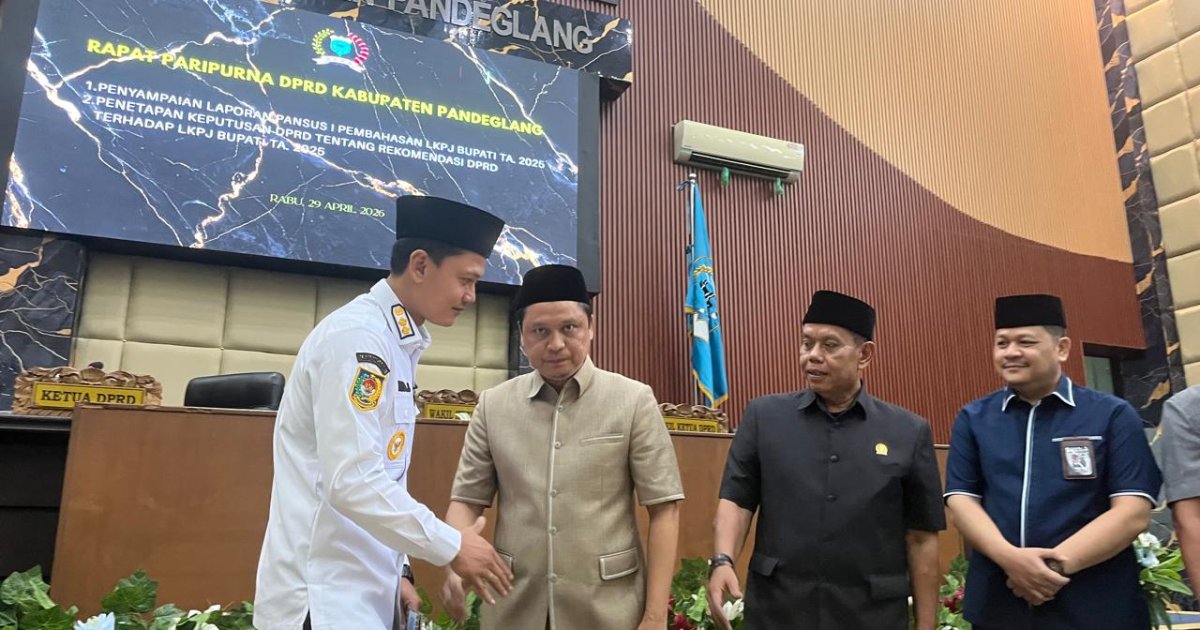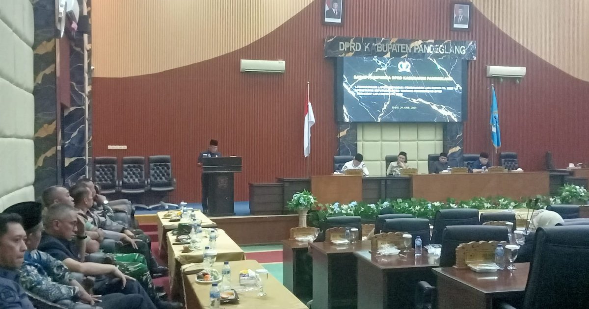 Sidang Paripurna DPRD Pandeglang yang dipimpin Tb.Agus Khotibul Umam selaku Ketua Dewan dari Fraksi Golkar didampingi para pimpinan lainnya diantaranya Wakil Ketua II Dadi Rajadi (F-Nasdem) dan Wakil Ketua III Fuhaira Amin (F-Demokrat) yang dihadiri Wakil Bupati Iing Andri Supriadi, Sekda Pandeglang Asep Rahmat dan perwakilan Forkopimda serta para kepala OPD di lingkungan Pemkab Pandeglang, Rabu (29/4/2026) pukul14.00 WIB.