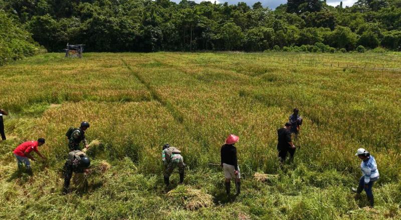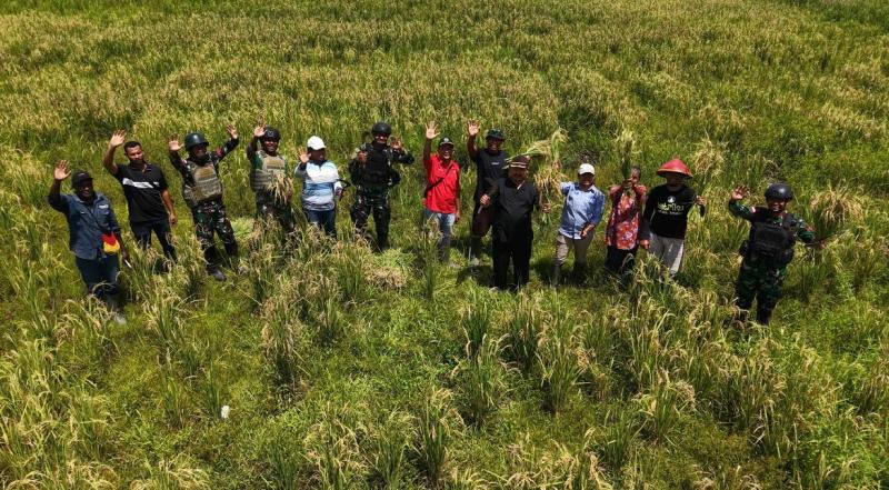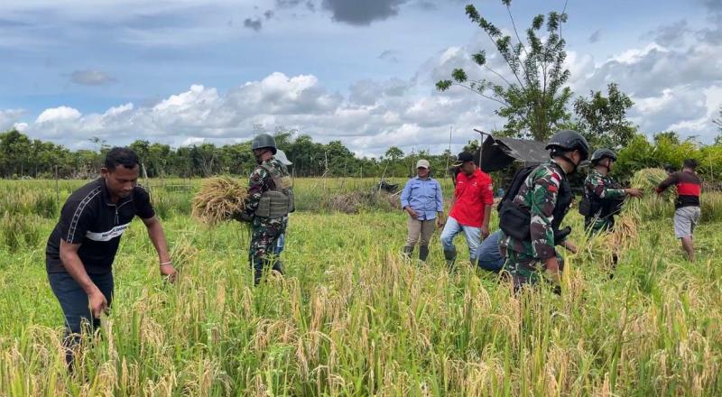 Kabarindoraya.com | BINTUNI - Upaya meningkatkan perekonomian masyarakat di wilayah perbatasan Papua dengan mendukung ketahanan pangan warga di wilayah Pos Kotis panen raya padi bersama masyarakat Distrik Meyado, Kab. Bintuni. Papua Barat, Minggu (23/11/2025).