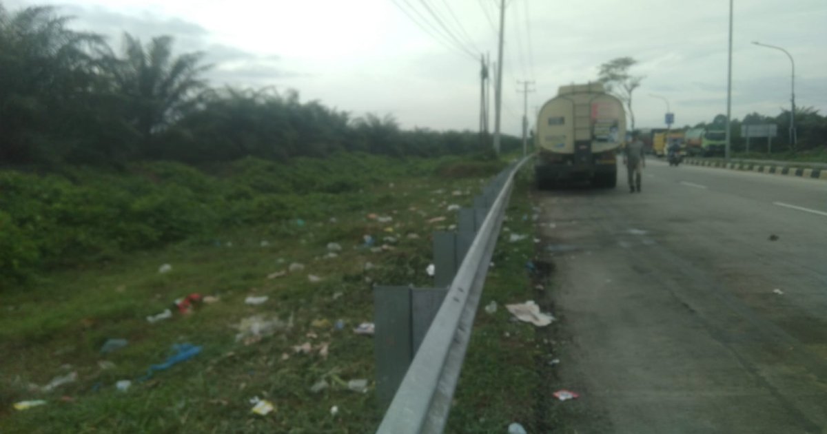 " Memang terlihat selain para kendaraan yang keluar dari gerbang tol para penguna kendaraan dengan se, enaknya membuang sampah, ditambah masyarakat yang melintas turut serta membuang sampah juga, " ucap Tuan Baron.