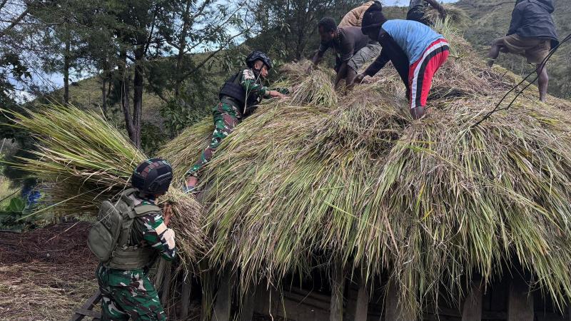 Kabarindoraya.com | Lanny Jaya, 20 Oktober 2025 - Satgas Pamtas RI-PNG Kewilayahan Yonif 511/DY Badak Hitam terus memberikan yang terbaik bagi warga yang berada di Lanny Jaya, Papua Pegunungan. Kali ini dibuktikan, dengan kegiatan personel Pos Malagai dalam pembangunan rumah adat untuk warga di Desa Numbukawi, Distrik Malagai.