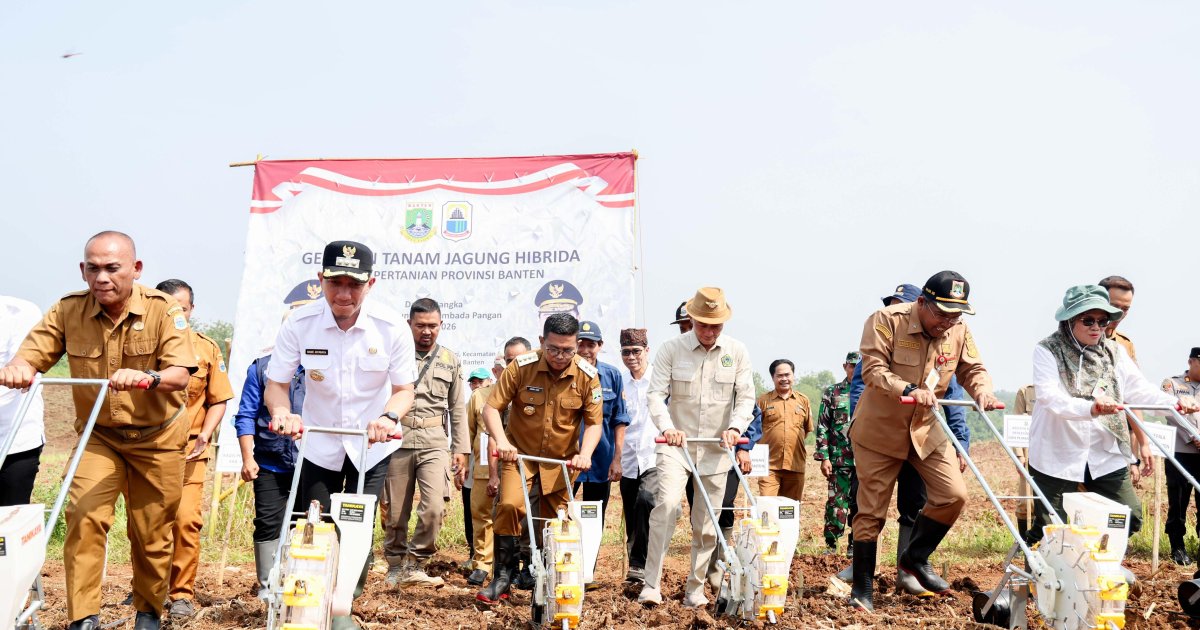 Pencanangan dilakukan di lahan seluas 10 hektare bersama kelompok tani Mekarjaya, Desa Mekarsari, Selasa (21/4/2026). Bibit jagung yang digunakan merupakan bantuan dari Pemerintah Provinsi (Pemprov) Banten.
