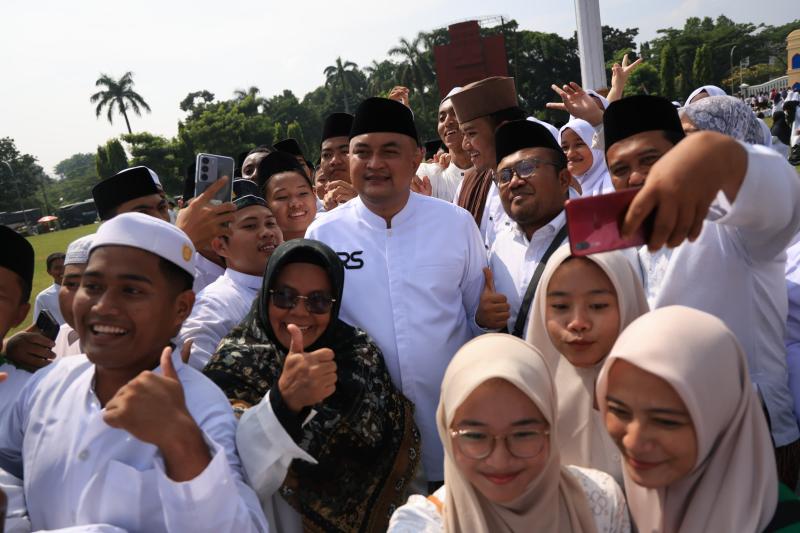 Kabarindoraya.com | Cibinong - Bupati Bogor, Rudy Susmanto menyampaikan pesan Menteri Agama Republik Indonesia agar santri harus berilmu, berakhlak, dan berdaya. Pesan tersebut disampaikan Rudy saat memimpin upacara peringatan Hari Santri tahun 2025, di Lapangan Tegar Beriman, Cibinong, Rabu (22/10).