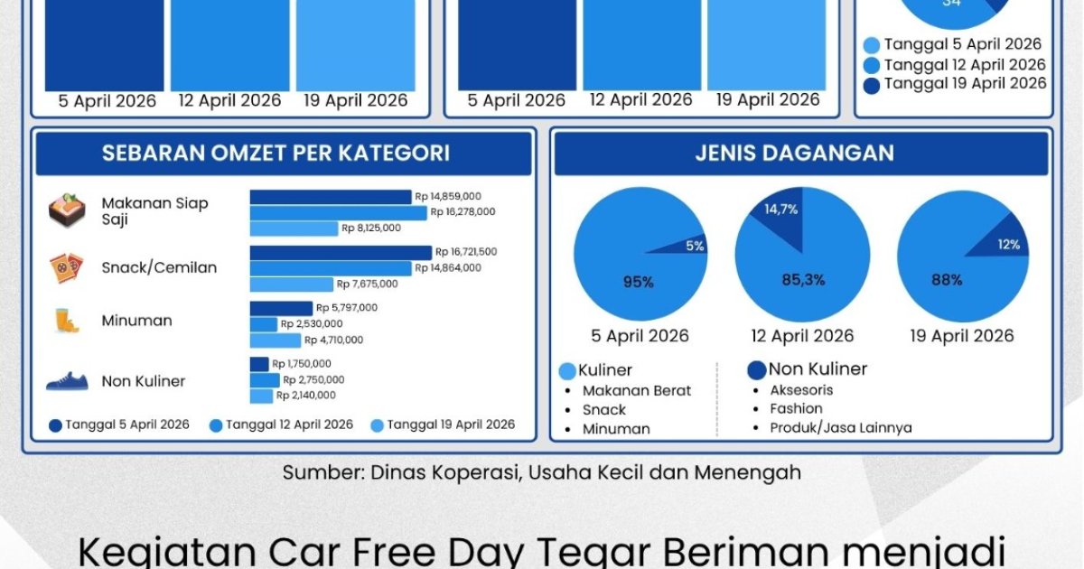 Program ini juga berperan penting dalam mendorong pertumbuhan UMKM lokal. Data Dinas Koperasi dan UMKM mencatat omzet pelaku usaha mencapai Rp 39,1 juta pada awal April, dengan rata-rata pendapatan tertinggi per pelaku usaha mencapai Rp 1 juta lebih. Jumlah pelaku UMKM yang terlibat pun meningkat dari 30 menjadi 40 peserta dalam satu bulan.