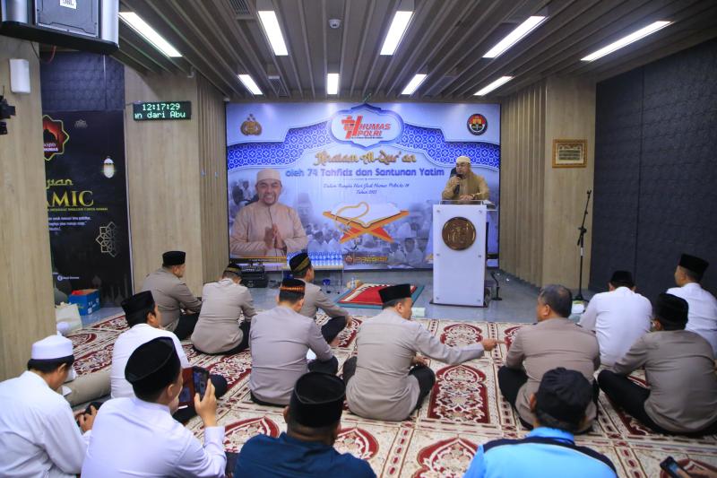 Kabarindoraya.com | Jakarta - Divisi Humas Polri menggelar khataman Al-Qur’an menjelang peringatan hari jadi ke-74. Khataman ini melibatkan 74 orang Tahfiz Quran dari sejumlah pesantren beserta personel anggota Divhumas Polri.