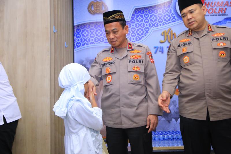 “Selamat Milad Humas Polri yang ke-74, sebagai ungkapan tanda bersyukurnya di hari ini mengundang 74 para hafidz dan hafidzah quran 30 juz dan menyantuni sampe 74 anak-anak Yatim,
