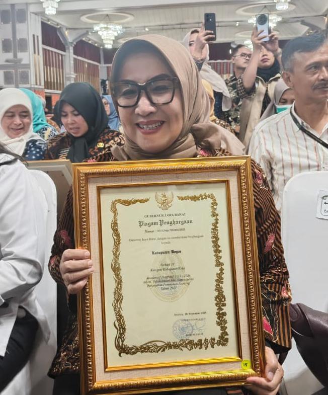 Kabarindoraya.com | BANDUNG – Kabupaten Bogor dinobatkan sebagai Kabupaten/Kota Akseleratif Progresif dalam upaya penurunan stunting periode 2019–2024 dan meraih penghargaan Tingkat Jawa Barat Tahun 2025. Penghargaan tersebut diserahkan oleh Wakil Gubernur Jawa Barat pada Kamis (20/11) di Bandung, dan dihadiri oleh perwakilan Pemerintah Kabupaten Bogor, yaitu Kepala Dinas Kesehatan serta Kepala Bidang Pemerintahan dan Pembangunan Manusia (PPM) dari Bappedalitbang Kabupaten Bogor. Penghargaan ini diraih sebagai bentuk apresiasi atas percepatan penurunan stunting yang dilakukan Kabupaten Bogor melalui program dan intervensi lintas sektor yang terus berakselerasi.