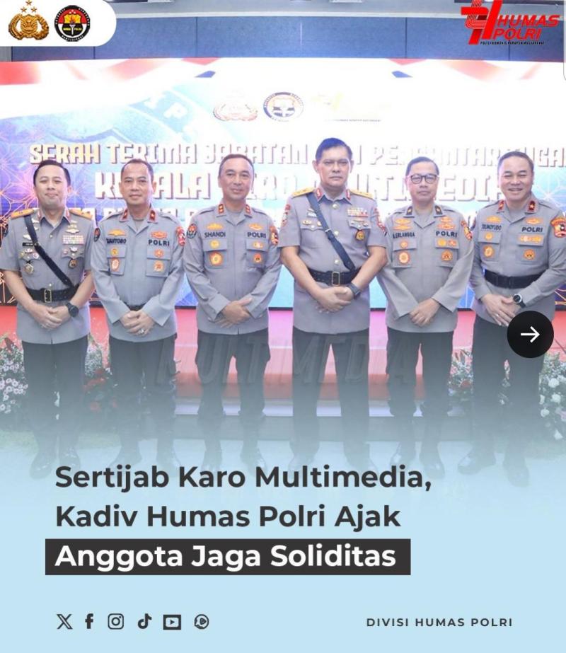 Sementara, Brigjen Pol. Ade Ary Syam Indradi, S.H., S.I.K., M.H., yang sebelumnya menjabat sebagai Kabid Humas Polda Metro Jaya, kini resmi meneruskan tongkat estafet kepemimpinan sebagai Karo Multimedia. Rotasi kepemimpinan di tubuh Polri sendiri diharapkan membawa angin segar untuk institusi yang semakin baik dalam menjalankan profesionalitas sebagai anggota Polri dalam menjaga nusa, bangsa, dan masyarakat.
