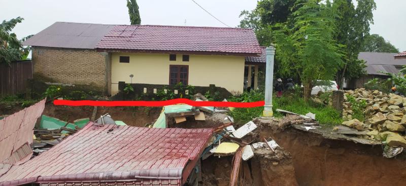 Kejadian ini dipicu oleh curah hujan yang sangat tinggi, menyebabkan debit air meningkat drastis dan menggerus struktur tanah di sekitar permukiman warga.