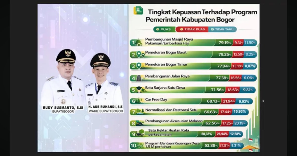 Rata-rata kepuasan sebesar 83,29% ini adalah amanah sekaligus motivasi bagi pemerintah Kabupaten Bogor dibawah kepemimpinan Bupati Bogor Rudy Susmanto.