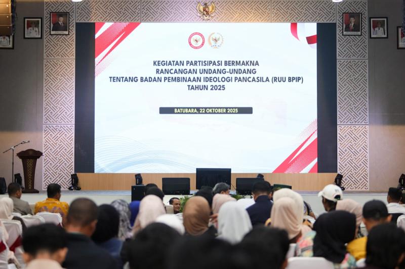 Kabarindoraya.com | Batu Bara - Wakil Bupati Batu Bara Syafrizal, S.E., M.AP., menghadiri kegiatan Partisipasi Bermakna Rancangan Undang-Undang Badan Pembinaan Ideologi Pancasila (RUU BPIP) yang digelar di Aula Kantor Bupati Batu Bara, Kecamatan Lima Puluh, Rabu (22/10/2025).