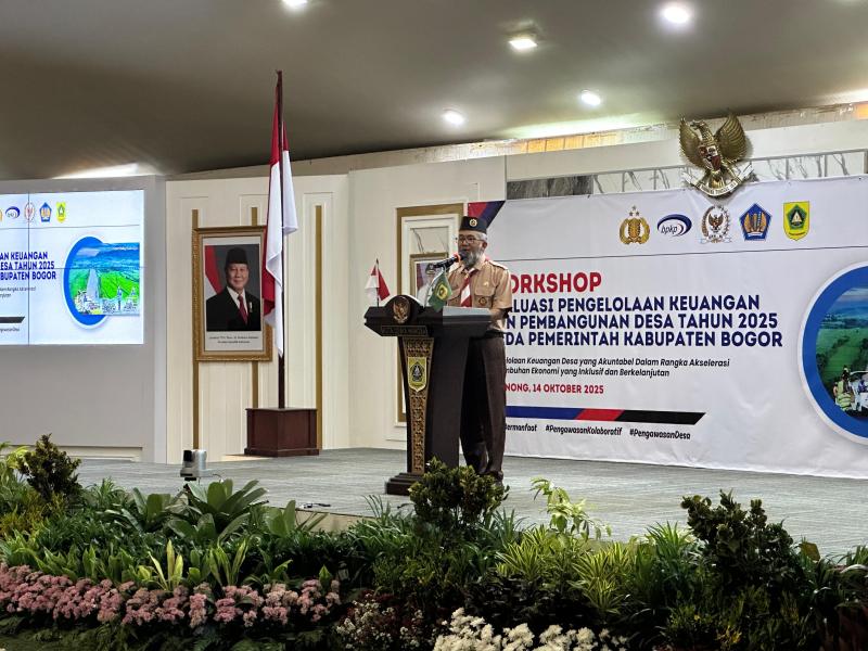 Kabarindoraya.com | Bogor – Pemerintah Kabupaten (Pemkab) Bogor bersama Badan Pengawasan Keuangan dan Pembangunan (BPKP) Provinsi Jawa Barat menggelar Workshop Evaluasi Pengelolaan Keuangan dan Pembangunan Desa Tahun 2025, kepada kepala Desa se-Kabupaten Bogor yang bertempat di Ruang Serbaguna I Sekretariat Daerah Kabupaten Bogor, Selasa (14/10/25). Kegiatan ini menjadi forum strategis untuk memperkuat tata kelola keuangan desa yang akuntabel serta mendorong pembangunan desa yang berkelanjutan di wilayah Kabupaten Bogor.