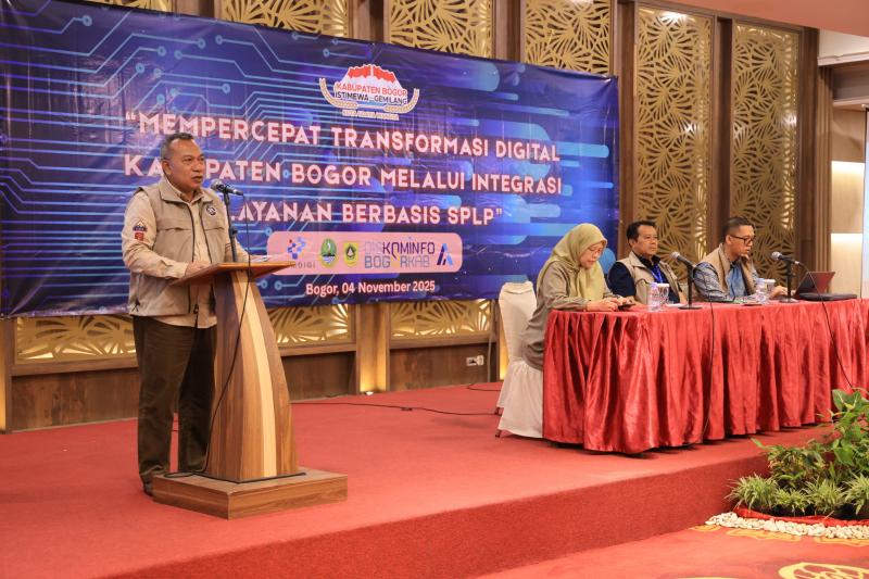 Kabarindoraya.com | Cibinong – Pemerintah Kabupaten Bogor melalui Dinas Komunikasi dan Informatika Kabupaten Bogor terus berupaya mempercepat transformasi digital di berbagai sektor pelayanan publik. Salah satu langkah strategis yang dilakukan yakni melalui integrasi layanan berbasis Sistem Pemerintahan Layanan Publik (SPLP), yang berlangsung di M-One Sukaraja, Selasa (4/11/25).