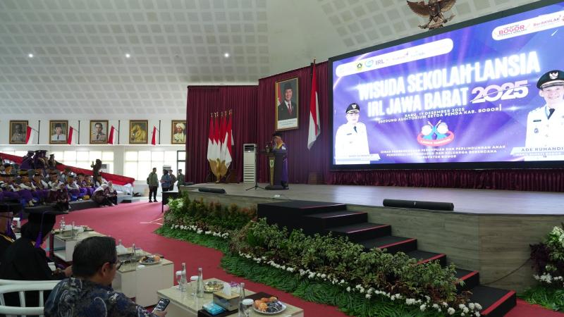 Kabarindoraya.com | Cibinong – Pemerintah Kabupaten (Pemkab) Bogor melalui Dinas Pemberdayaan Perempuan, Perlindungan Anak, Pengendalian Penduduk, dan Keluarga Berencana (DP3AP2KB) berkolaborasi dengan Dinas Sosial, Yayasan Indonesia Ramah Lansia Jawa Barat, Rukun Senior Living, Sekolah Lansia Khairul Umah , Sekolah Lansia BKL Wijaya Kesuma dan Sekolah Lansia Cinta Bersama menggelar Wisuda Sekolah Lansia se-Kabupaten Bogor di Auditorium Setda, Rabu (17/12/25). Kegiatan ini dihadiri oleh 300 wisudawan dan wisudawati, serta perwakilan dari berbagai instansi terkait.