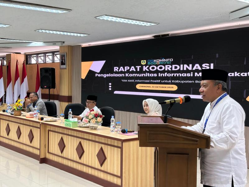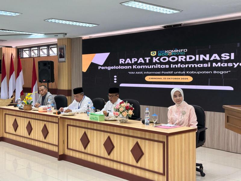 Kabarindoraya.com | Cibinong – Pemerintah Kabupaten Bogor melalui Dinas Komunikasi dan Informatika Kabupaten Bogor menggelar kegiatan Rapat Koordinasi dengan Kelompok Informasi Masyarakat (KIM), untuk mendorong KIM untuk lebih aktif memanfaatkan media sosial sebagai kanal penyampaian informasi, yang digelar di aula Diskominfo Kabupaten Bogor, pada Rabu (22/10/25).
