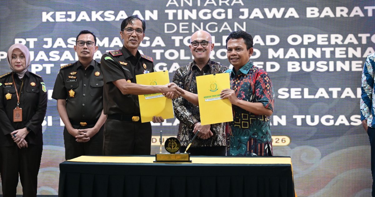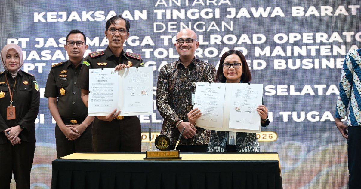 Kabarindoraya.com | Bandung - Kajati Jabar Dr. Hermon Dekristo, S.H., M.H. menandatangani Perjanjian Kerjasama antara Kejaksaan Tinggi Jawa Barat dengan PT. Jasamarga Tollroad Operator (JMTO), PT. Jasamarga Tollroad Maintenance (JMTM), PT. Jasamarga Related Business (JMRB) dan PT. Jasamarga Jakarta Cikampek Selatan (JJS) tentang Koordinasi dalam Pelaksanaan Tugas dan Fungsi yang ditandatangani oleh Direktur Pengembangan Usaha PT. Jasa Marga (Persero) Tbk Ari Respati diselenggarakan di Aula R.Soeprapto Kejati Jabar (10/02/26).