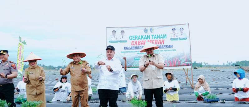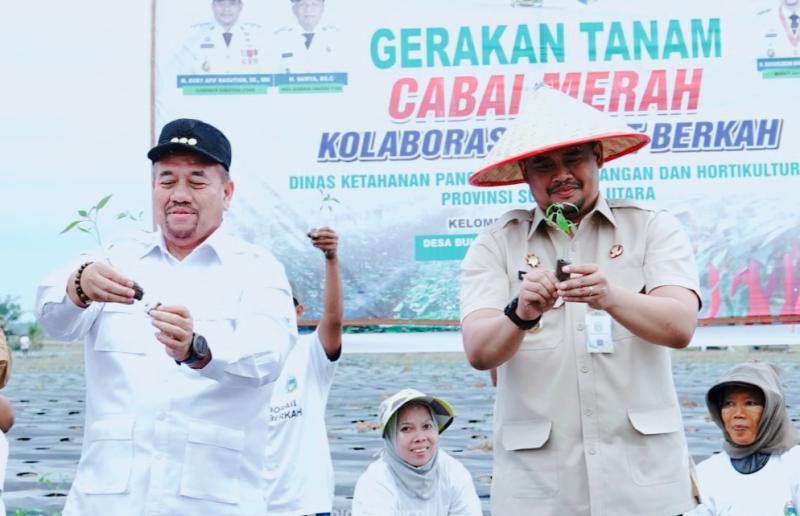 Kabarindoraya.com | Batu Bara - Upaya penguatan ketahanan pangan daerah dan peningkatan produktivitas hortikultura, khususnya komoditas cabai merah Bupati Batu Bara H. Baharuddin Siagian, S.H., M.Si bersama Gubernur Sumut Bobby Afif Nasution, S.E., M.M melaksanakan gerakan tanam cabai merah bersama kelompok tani, Desa Bulan-Bulan, Kecamatan Lima Puluh Pesisir, Selasa (25/11/2025).