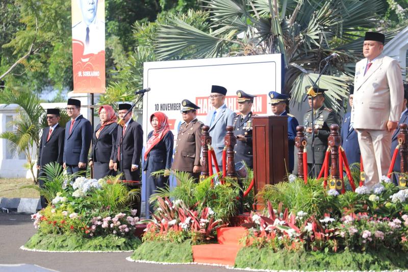 “Para pahlawan bukan sekadar nama di batu nisan, melainkan cahaya yang menerangi jalan kita hingga hari ini. Kemerdekaan tidak jatuh dari langit, melainkan lahir dari kesabaran, keberanian, dan keikhlasan,” ucap Bupati Rudy saat membacakan amanat Mensos.