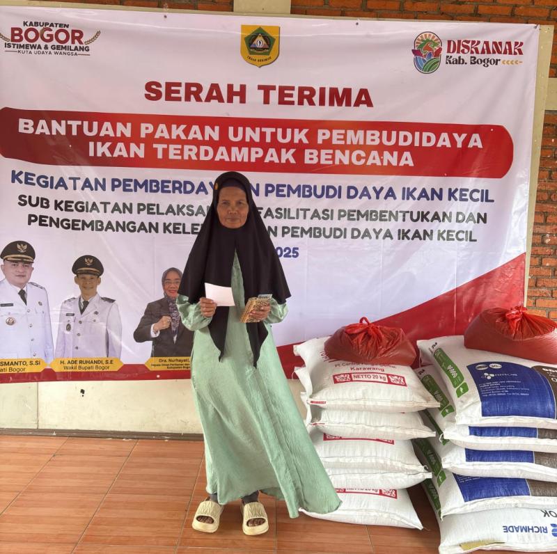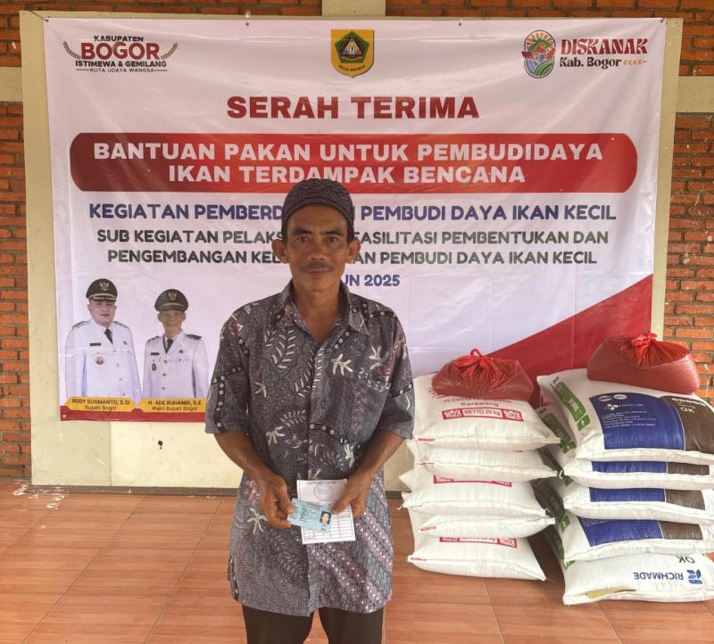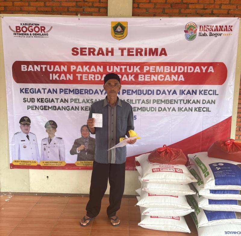 “Saya ucapkan terima kasih kepada Bupati Bogor yang telah memberikan bantuan ini untuk pakan ikan yang terdampak banjir,” ujar Bapak Gojali.