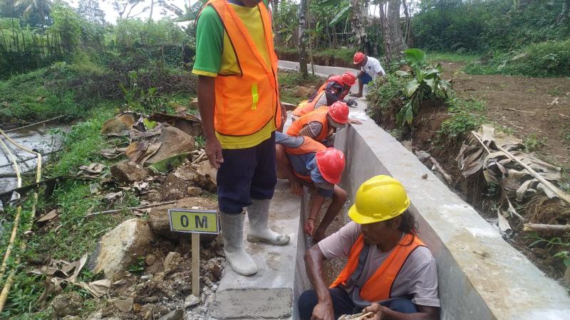 Kabarindoraya.com | Pamijahan - Pekerjaan proyek pembangunan Saluran Irigasi sepanjang 480 meter di Kampung Babakan Rt 02 / Rw 02 di Dusun 1, Desa Gunung Bunder I, Kecamatan Pamijahan, Kabupaten Bogor, Jawa Barat, selesai dikerjakan.