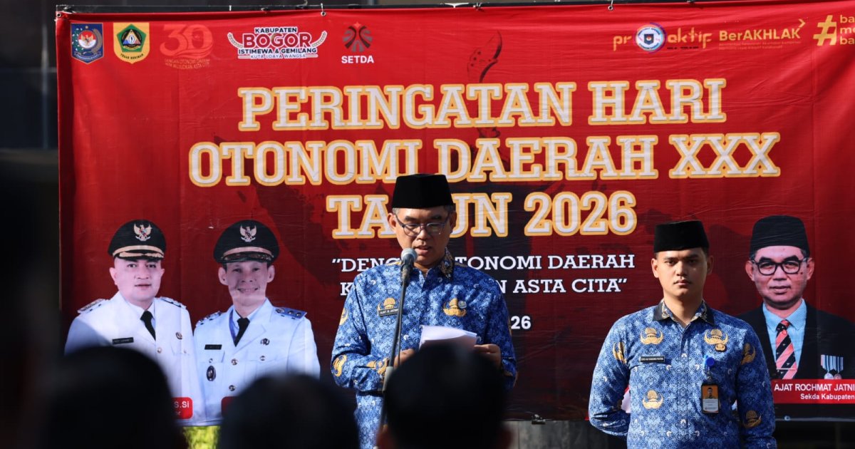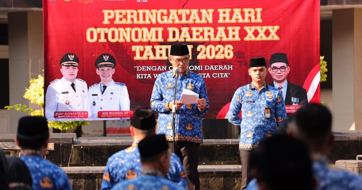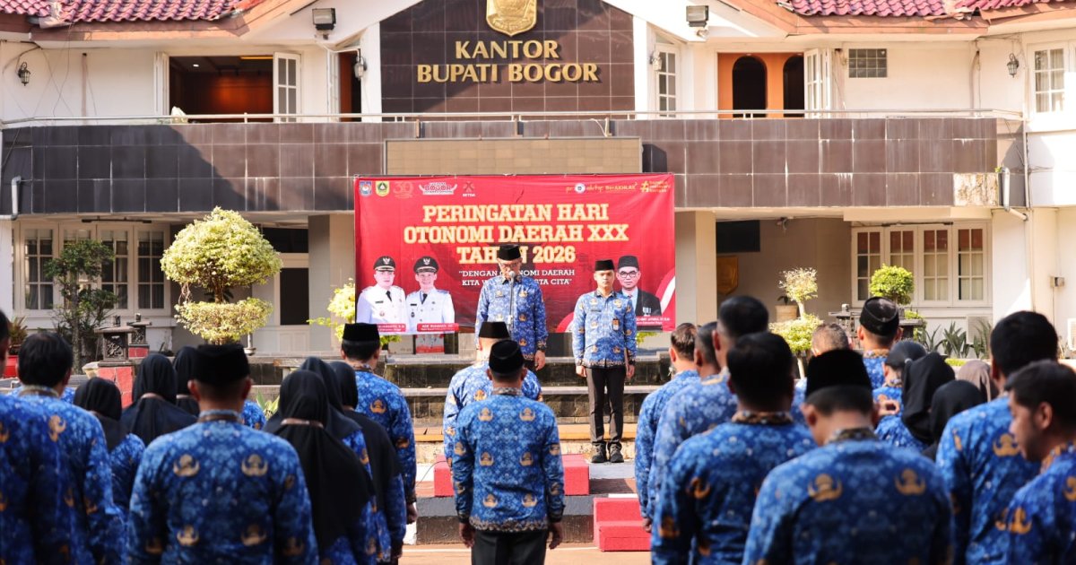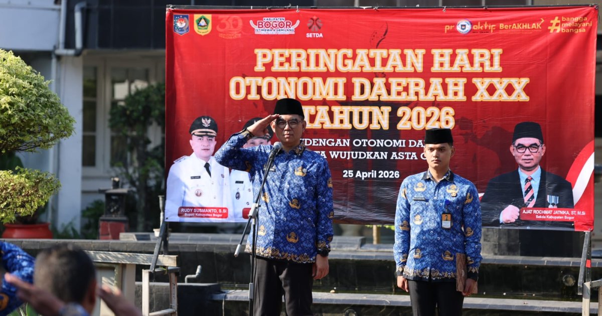 Kabarindoraya.com | Cibinong - Sekretaris Daerah (Sekda) Kabupaten Bogor, Ajat Rochmat Jatnika memimpin Upacara Peringatan Hari Otonomi Daerah ke-30 Tahun 2026. Upacara berlangsung di Halaman Kantor Sekretariat Daerah, Cibinong, Senin (27/4). Peringatan Hari Otonomi Daerah merupakan momentum untuk memperkokoh sinergi, komitmen, dan peran pemerintah daerah dan pusat dalam memberikan manfaat nyata bagi masyarakat.