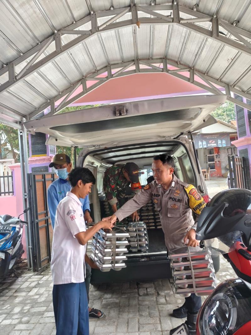 Bhabinkamtibmas Bripka Asep mengatakan, ia bersama Babinsa melaksnakan pengawasan proses distribusi makanan agar sesuai dengan standar gizi yang ditetapkan, sehingga dapat membantu meningkatkan kesehatan dan konsentrasi belajar siswa.
