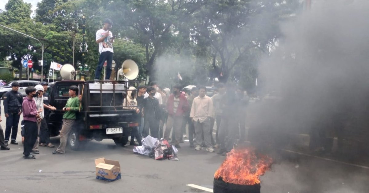 Kabarindoraya.com | Bogor - Ratusan mahasiswa yang tergabung dalam Resolusi Mahasiswa Bogor (RMB) menggelar aksi unjuk rasa di depan kompleks Tegar Beriman, Cibinong, Kamis (5/1/2026).