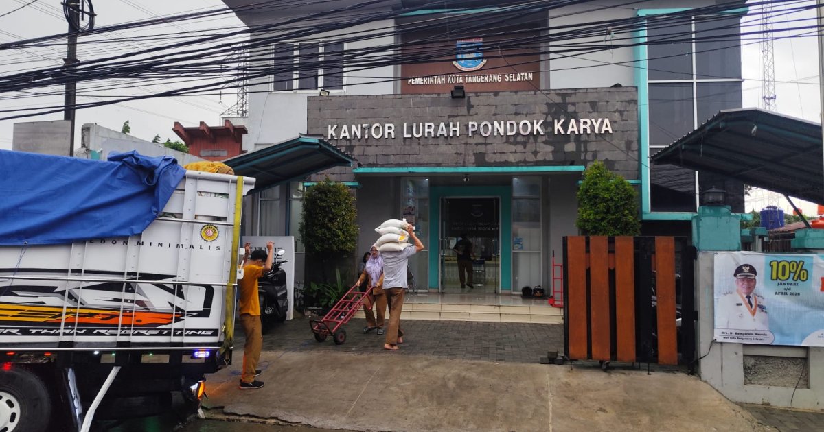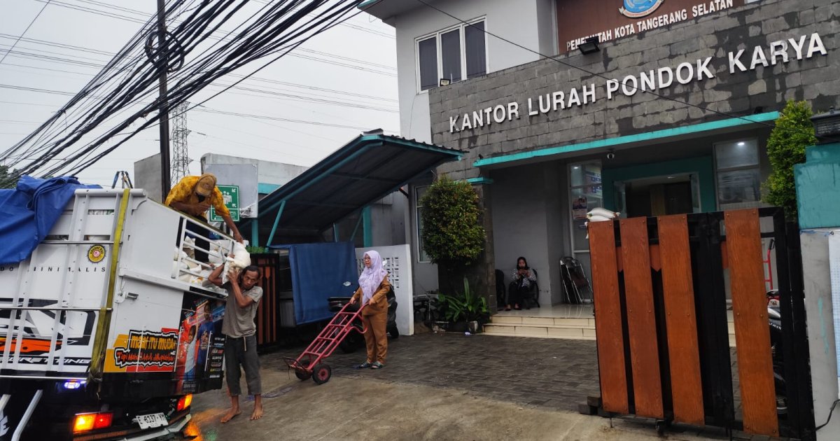 Kabarindoraya.com | Tangsel - Sebuah truk bermuatan beras untuk bantuan sosial (bansos) bernomor polisi E 8137 YM terperosok ke saluran air di depan Kantor Kelurahan Pondok Karya, Pondok Aren, Tangerang Selatan, pada Senin (30/3/2026).