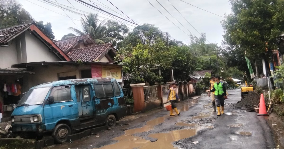 Pantauan di lokasi, sejumlah petugas terlihat melakukan penanganan pada ruas jalan yang sebelumnya ramai diberitakan Jalan Ace Tabrani sempat ditambal secara swadaya oleh Warga dan Forum Komunikasi Bumi Putra Bogor Barat. Senin 02, February, 2026.